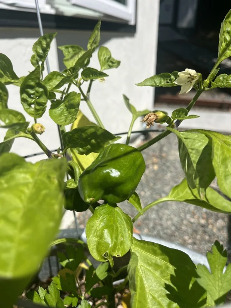 Tomatoes: starting to blush yay but are taking a long long time and Erika still votes for cherry variety given the minimal yield we get outta these.